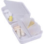 Wij hebben veel verschillende pillendoosjes die u kunt laten bedrukken met uw logo en of tekst. Zo hebben we doosjes met een digitale timer. De timer wordt ingesteld en gaat af zodra het tijd is om de pillen in te nemen. Een ander variant is onze drinkfles met pillenhouder in een. Zo heeft u altijd water bij hand als het tijd is om een pil in te nemen. De pillendoosjes hebben een of meerdere compartimenten, denk dan een doosje voor 1 dag, voor 1 week of meerdere keren per dag.