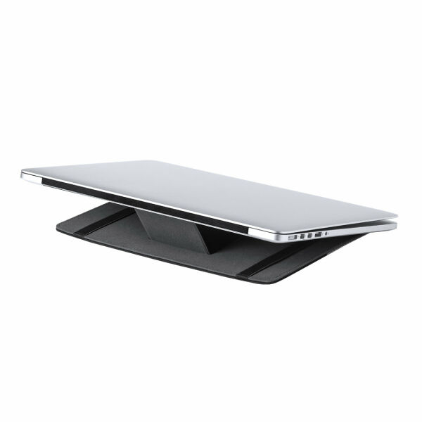 Stijlvolle en functionele organiser met magnetische standaard, ideaal om overal gemakkelijk met laptops te werken. Gemaakt van duurzaam, grijs, gemarmerd polyester met zwart gekleurde PU details. Inclusief balpen en smartphonehouder, met 4 elastische vakken voor het opbergen van meerdere gadgets.