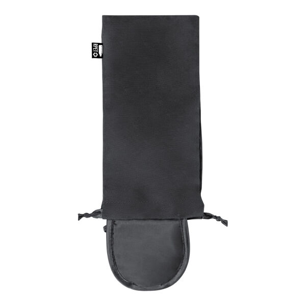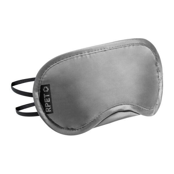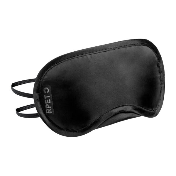 RPET polyester oogmasker voor op reis met rubberen banden, in RPET-etui met trekkoord. Met kenmerkend RPET-label.