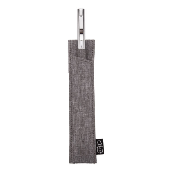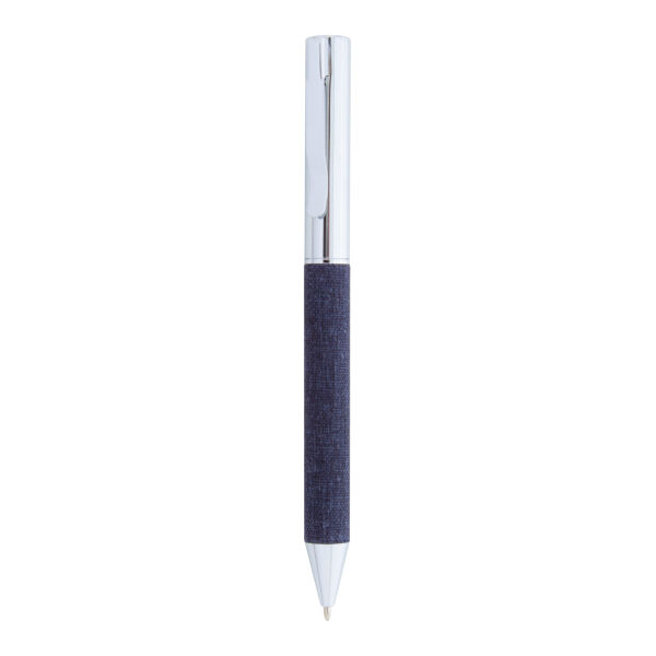 Metalen balpen met draaimechanisme en met RPET polyester beklede houder. In bijpassende RPET polyester koffer. Blauwschrijvend.