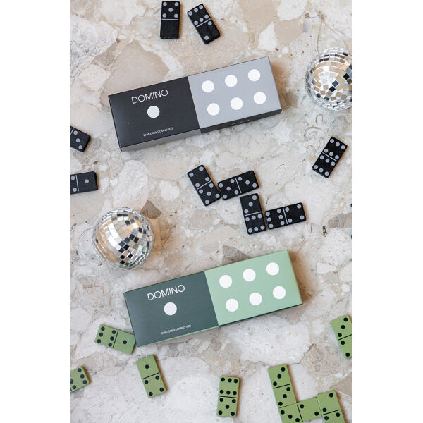 Dit klassieke spel met houten steentjes is erg geliefd bij jong en oud. Je kunt het spel met 2-4 spelers spelen. Probeer je eigen steentje aan te leggen aan de stenen die al op tafel liggen. Het aantal ogen op de stenen moet overeenkomen. De speler die als eerst al zijn/haar steentjes wegspeelt heeft gewonnen.