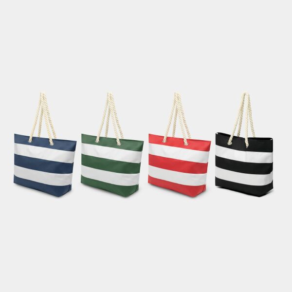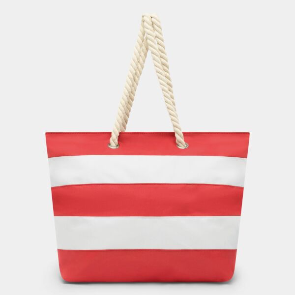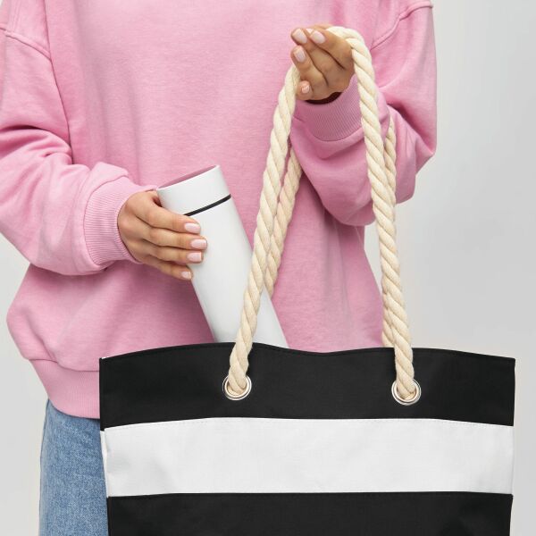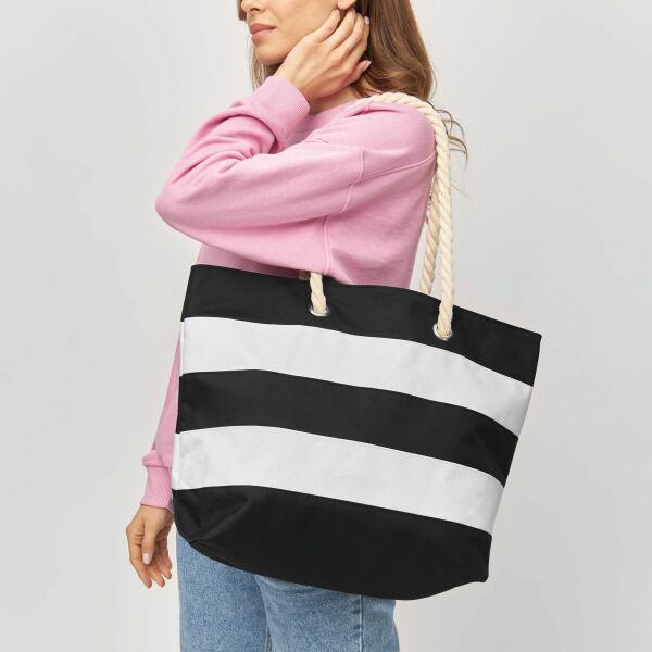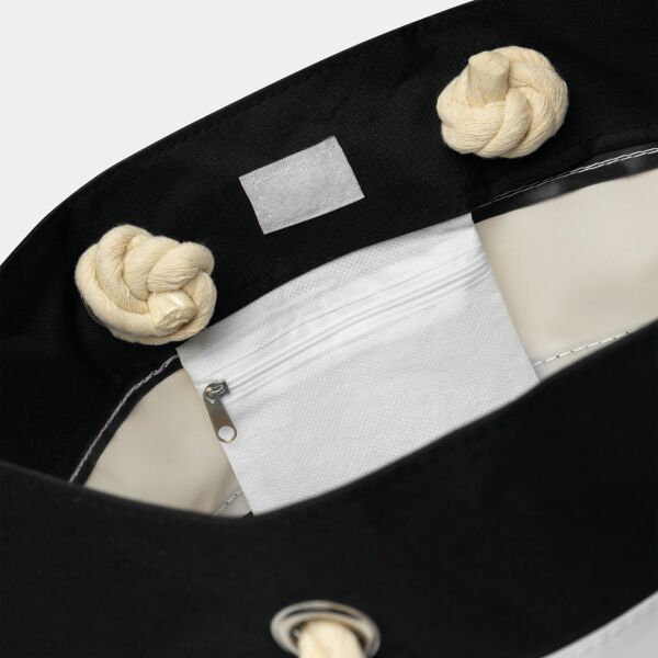 Strandtas van 300D polyester SYLT met klittenbandsluiting, binnenvakje met rits en hengsels van touw (katoen).